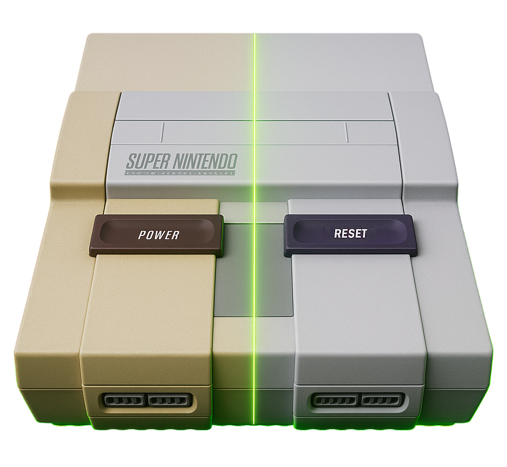 Na restauração, além do funcionamento, a gente trabalha a aparência, conservação e valor de coleção: limpeza profunda, retrobright seguro, pintura, reposição de peças e testes completos.